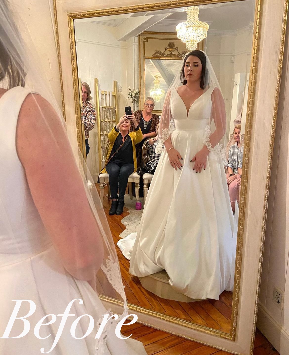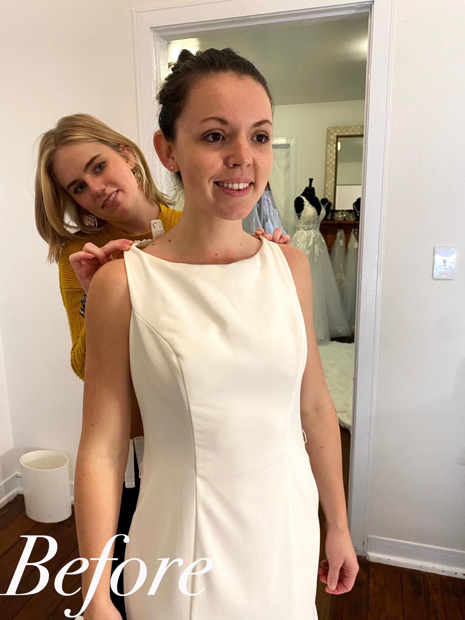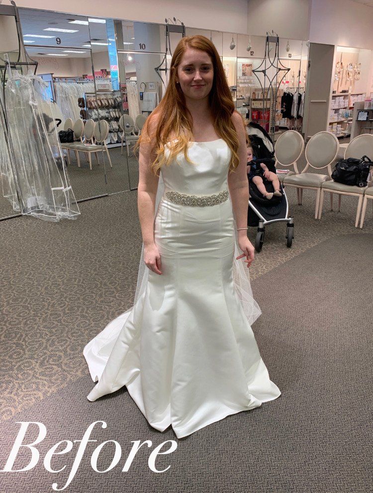 For your fitting appointment please bring your dress, your wedding shoes and all undergarments (bra, shapewear, etc.) that you will be wearing on the wedding day, this is crucial for properly adjusting the fit of your gown. You are welcome to bring a veil and other accessories to try on with your dress during your appointment but it is not required. You are more than welcome to bring a friend or loved-one to accompany you at your appointment as well.