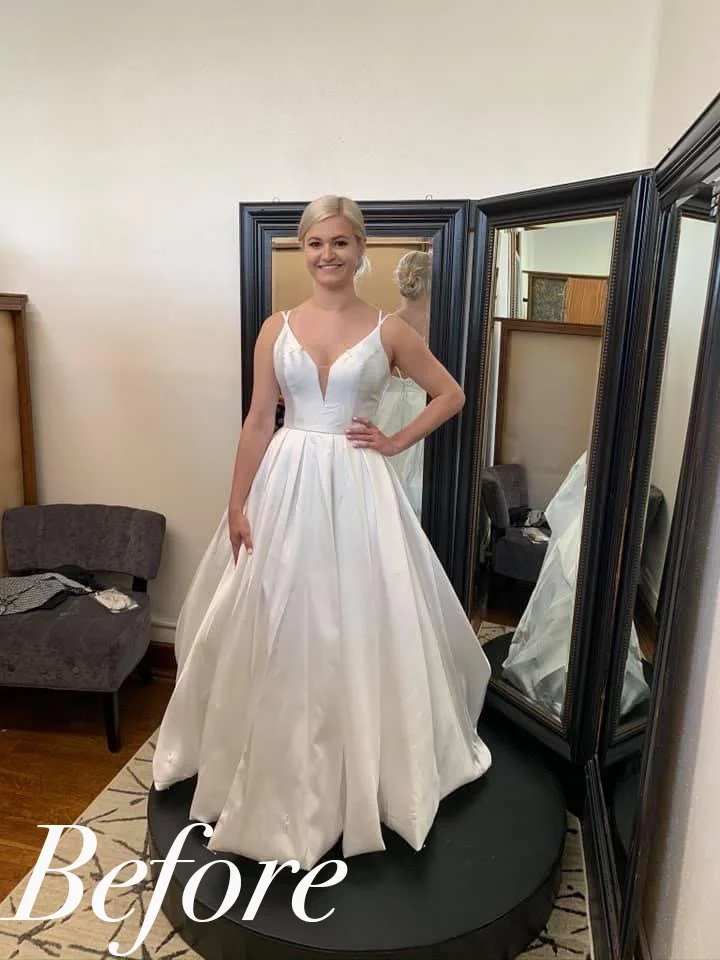 Each alteration appointment is a one-on-one meeting with Ruthy (owner/lead designer). The first appointment is typically the initial try-on or fitting. Ruthy will observe you in your dress to assess the fit issues and pin the necessary adjustments, sizing the garment perfectly to your body. Before you leave, Ruthy will schedule your return appointment. Standard bridal/formal alterations (resizing, hemming, adding bra cups, shortening straps or shoulders, ect.) generally takes a minimum of 4 weeks to complete. If your gown requires a major size change, a customization/redesign, or an intense, time-consuming alteration, you may require multiple fitting appointments and a larger timeline for total completion. Please call and schedule your appointment at least 3 months before your wedding date. If you are unsure about the severity of your alterations needs, we recommend calling to schedule as soon as possible.